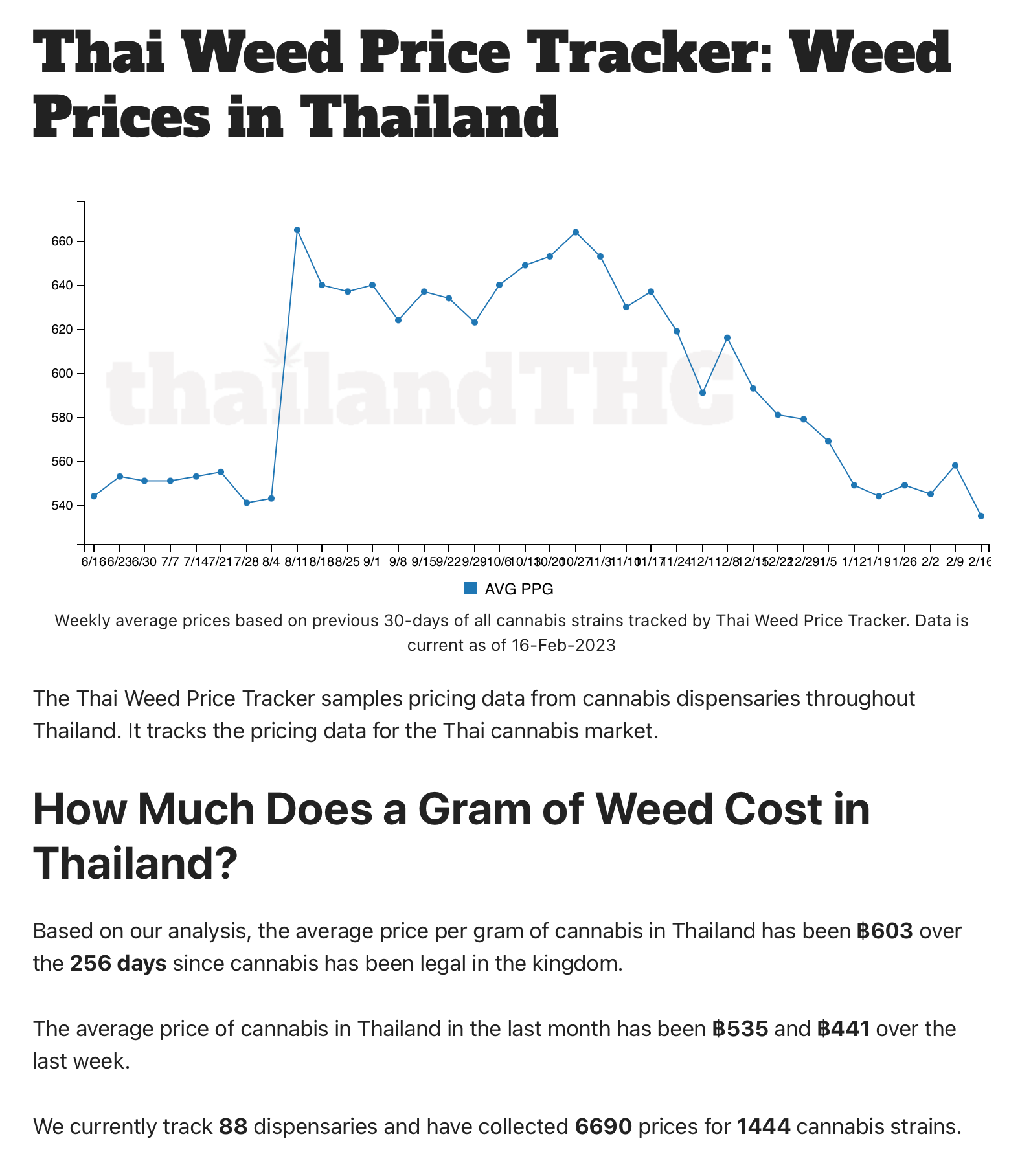 This week the average prices for a gram of weed hit 535 baht. The previous lowest price was 541 baht in July of 2022.