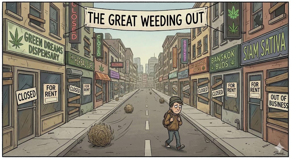 If you’ve walked down Sukhumvit lately and noticed a few less neon leaves flickering in the night, you aren’t hallucinating. The numbers are in, and they are staggering: Over 7,000 cannabis shops in Thailand have shuttered in the last year.